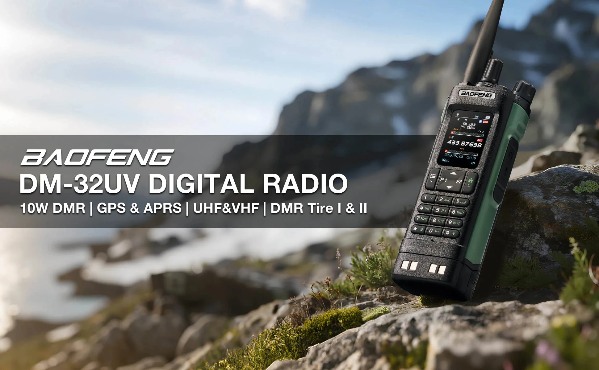 BAOFENG DM-32 digital walkie talkie with AM:108-136MHz,VHF:136-174MHz,UHF:400-470mHz, 4000 channels, dual mode (digital, analog) .Direct mode dual slot communication achieves two groups of calls at a frequency point at the same time so that the communication efficiency is doubled and frequency resources are saved.