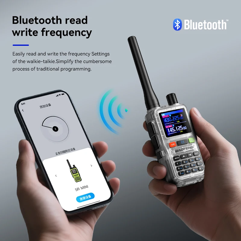 BAOFENG UV 5R Mini Walkie Talkie Bluetooth Wireless Copy Frequency Dual PTT UHF VHF AM Type-C Long Range Ham 2 Way Radio Camping
