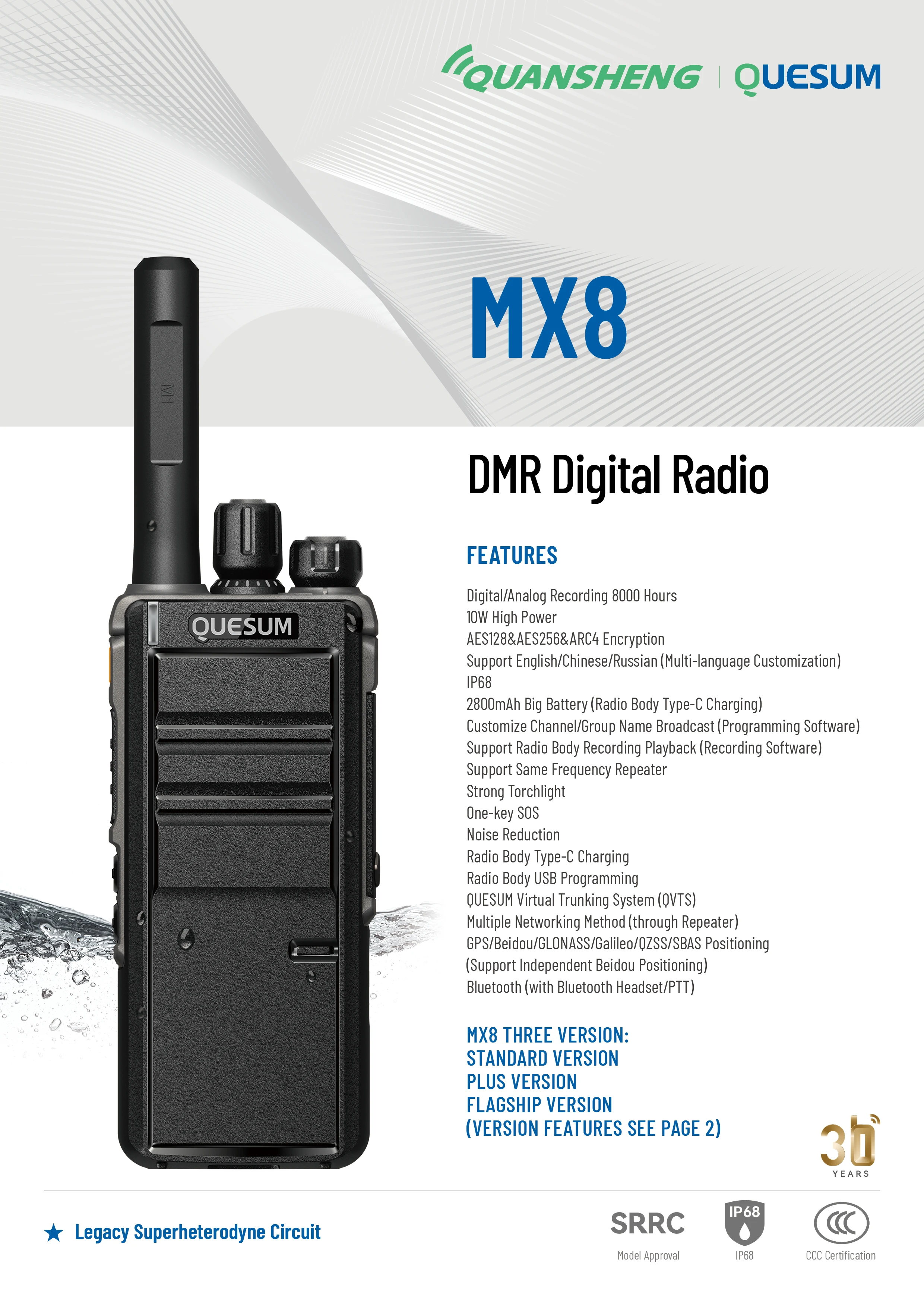 Quansheng MX8 DMR Radio | 10W High Power, IP68 Waterproof, 8000H Recording & Bluetooth