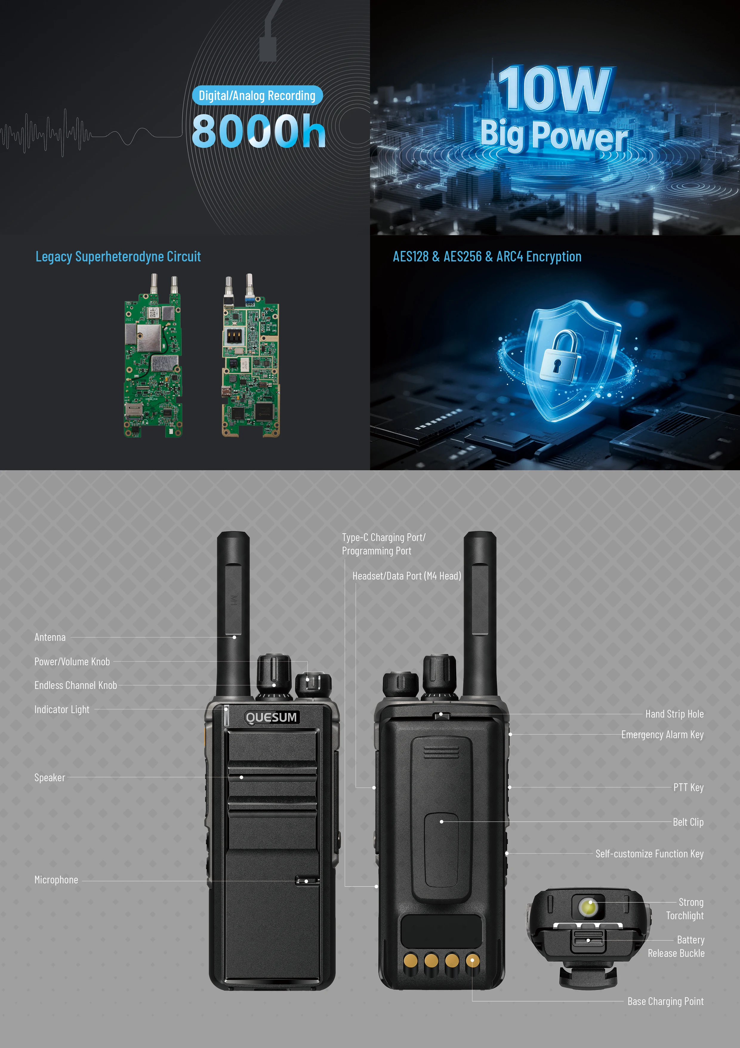 Introducing the Quansheng MX8 2026, a next-gen 10W high-power DMR digital two-way radio engineered for demanding professional use. With IP68 dust and water resistance, it withstands submersion up to 2m for 30 minutes and harsh conditions. ETSI Tier II compatibility ensures seamless integration, while built-in Bluetooth enables wireless audio accessories and 8000 hours of voice recording for critical logging. Dual-band operation (VHF/UHF) delivers extended range up to 15km in open areas, with 1024 channels for organized team communication.