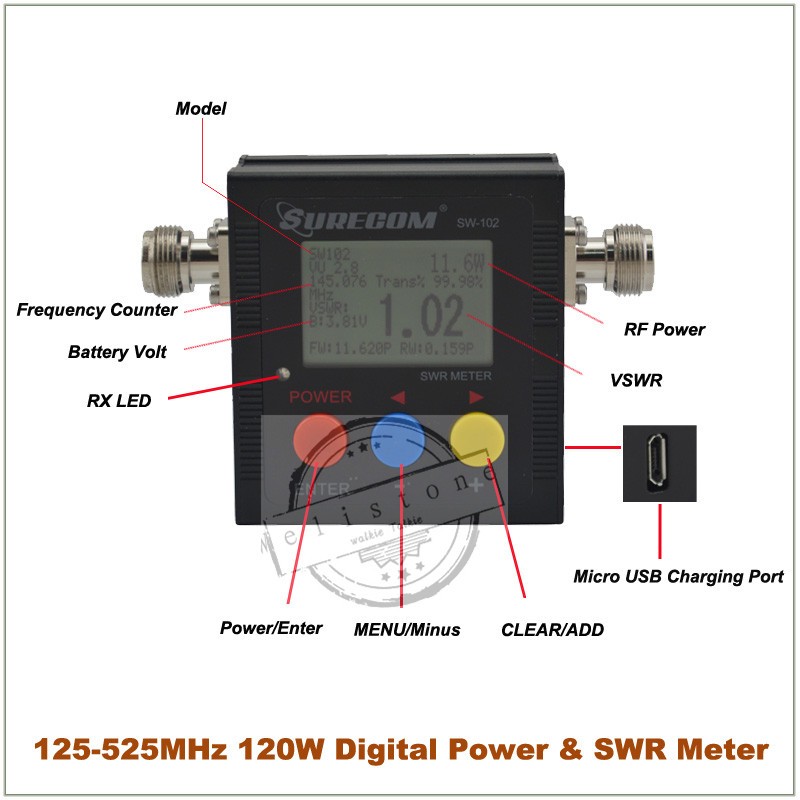 SURECOM SW-102 VSWR 1.00-19.9 Digital VHF/UHF 125-525MHz Power &SWR Meter for Two Way Radio Ham Walkie Talkie Wholesale J6510A