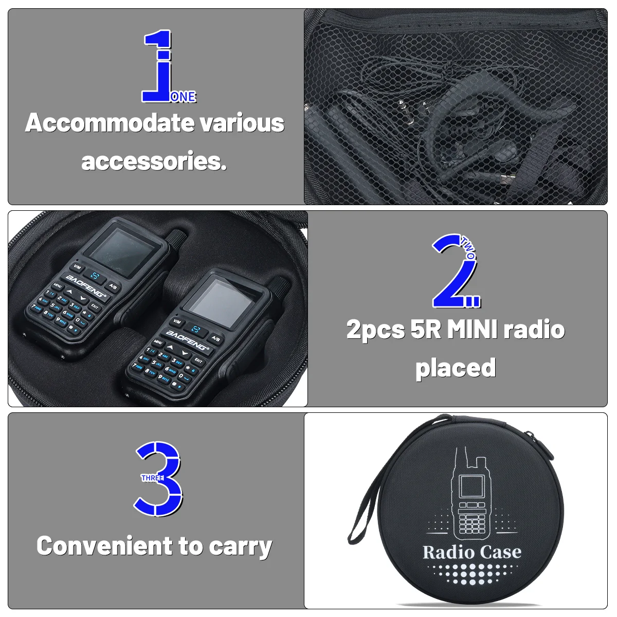 【 Walkie-talkie Special Handbag 】Two-way radio storage holderis perfectly suitable for UV-5R Mini Mini 5 two-wayradio. It can also hold chargers, antennas, headphones and other accessories, making it convenient to carry outdoors.